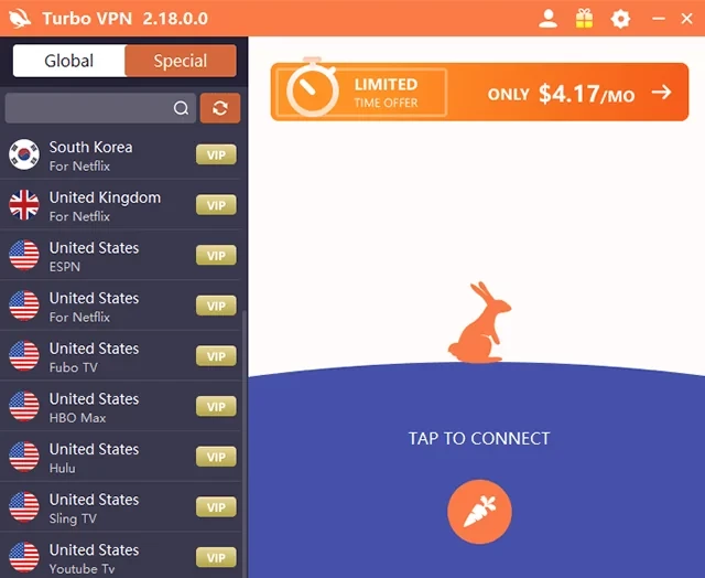 ستجد العديد من شبكات VPN المجانية أو المدفوعةلحل مشكلة التصفح المجهول عبر الإنترنت. ولكن بعض شبكات VPNبسيطة للغاية وموثوقة مع خيارات مجانية مثل Turbo VPNالذي يسمح للمستخدمين بالحصول على جميع وظائف التصفح عبر الإنترنت دون إنفاق فلس واحد.